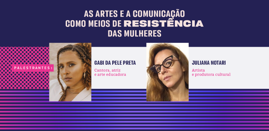Artista, Cantora, Feminista, Mulher Negra e Produtora Cultural, Gabi da Pele Preta se une a Juliana Notari, que é Artista, Produtora Cultural e Pesquisadora na área de Artes (Doutoranda e Mestre em Artes pelo PPGARTES/UERJ), para debater sobre as artes e a comunicação como meios de resistência das mulheres. As duas são convidadas da UNIAESO para o encontro virtual, no Google Meet, dia 31 de março, das 20h às 22h. Acesso pelo link: meet.google.com/nbf-rzby-gxf.
