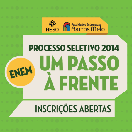 As Faculdades Integradas Barros Melo (Aeso), além dos vestibulares tradicionais, também oferece a oportunidade dos estudantes ingressarem na instituição com a nota do Exame Nacional do Ensino Médio (Enem). Para concorrer a uma vaga, o aluno deve preencher o formulário disponível no site e apresentar a nota do Exame à instituição, localizada na Avenida Transamazônica, 405, Jardim Brasil II – Olinda, até o dia 30/01. Os candidatos que obtiverem as melhores médias ocupam as vagas remanescentes dos cursos.