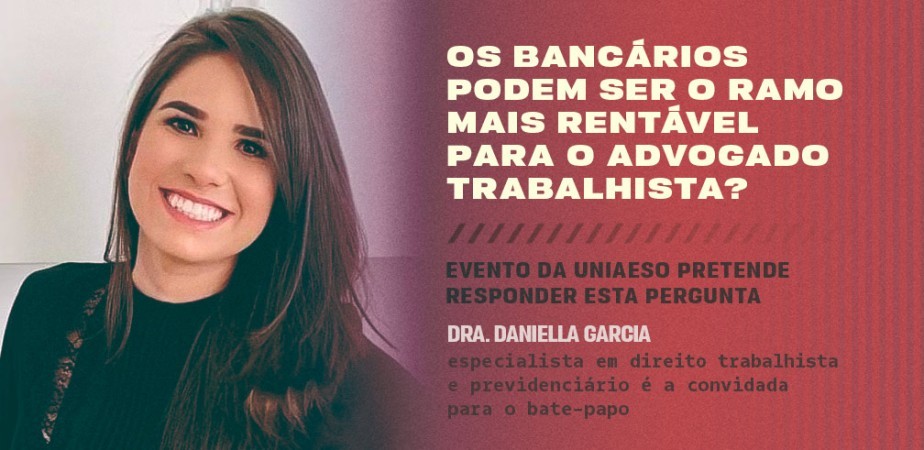 O curso de Direito da UNIAESO promove debate sobre os direitos trabalhistas dos bancários. A ideia é explicar as mudanças das normas referentes à essa categoria e, em razão deste cenário, o surgimento de um novo ramo do direito. Na ocasião, a especialista em direito trabalhista e previdenciário, Dra Daniella Garcia conversa com os participantes. A palestra conta com mediação do professor Rafael Ribeiro.