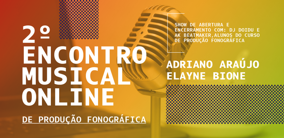 Dia 11 de novembro, a partir das 18h, os cursos de Produção Fonográfica e Publicidade e Propaganda do Centro Universitário AESO-Barros Melo (UNIAESO) promovem o 2º Encontro Musical Online de Produção Fonográfica. A iniciativa, que acontece via Google Meet, faz parte da prática das disciplinas de Prática de Produção fonográfica e Organização de eventos. Acesso pelo link: meet.google.com/xzm-pojw-qbx.