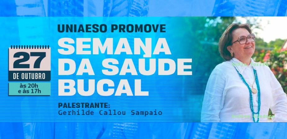 A UNIAESO se prepara para celebrar o Dia Nacional da Saúde Bucal (25/10), com a Semana da Saúde Bucal. No dia 27 de outubro, o curso de Odontologia da instituição recebe a Cirurgiã-dentista, Especialista em Endodontia e Patologia Bucal, Gerhilde Callou Sampaio.